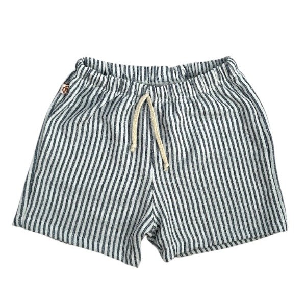 SHORT DE LINO RAYADO BLANCO Y ROSA CON ELÁSTICO Y CORDÓN