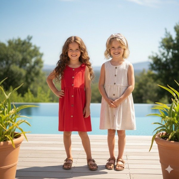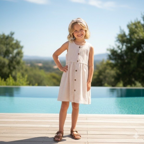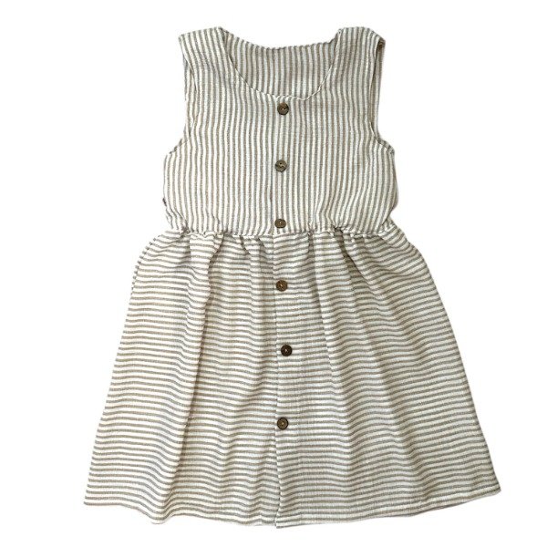 VESTIDO LINO RAYADO BLANCO Y BEIGE CON BOTONES