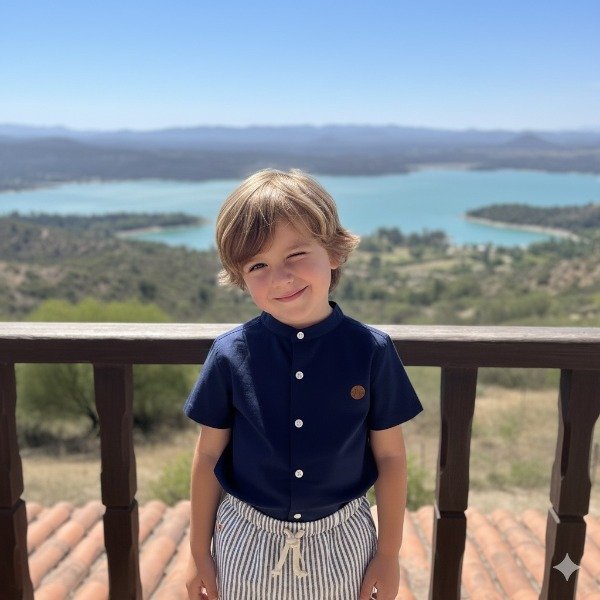 SHORT DE LINO RAYADO BLANCO Y AZUL CON ELÁSTICO Y CORDÓN