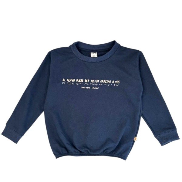 Buzo rustico, azul marino, con estampa braille