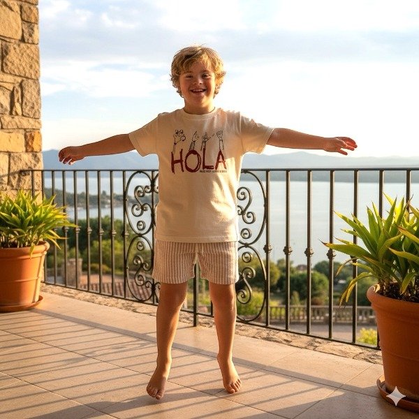 REMERA DE ALGODÓN natural CON ESTAMPA DE HOLA EN LENGUA DE SEÑAS ARGENTINA