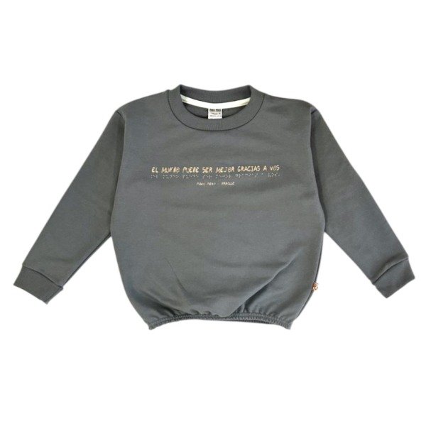 Buzo de rustico color gis azulado con estampa para leer con braille